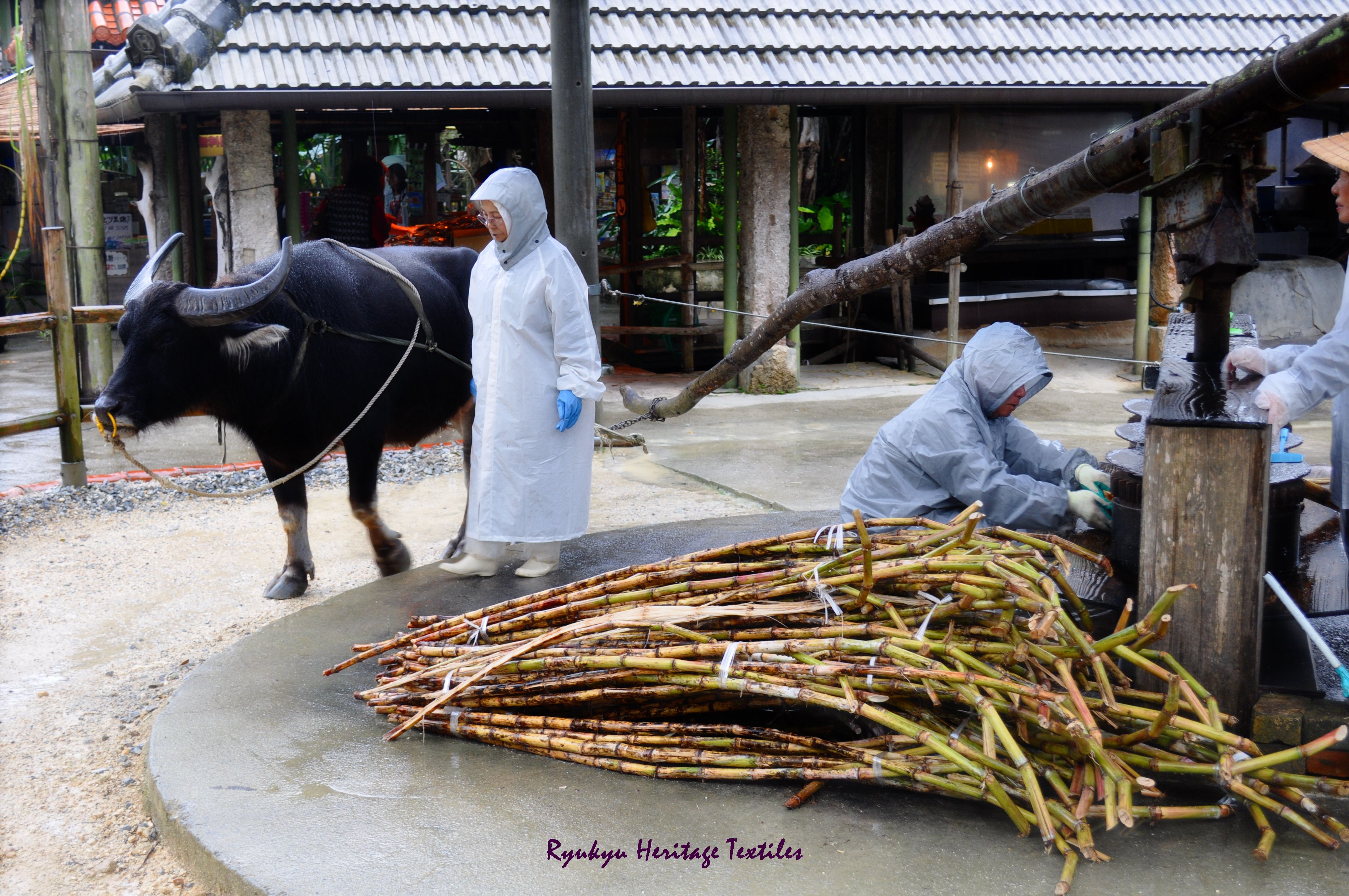 Now, many Okinawans use sugarcane for dyeing. As in most Ryukyuan dye methods, dried or fresh plants are fermented to extract the dyes.