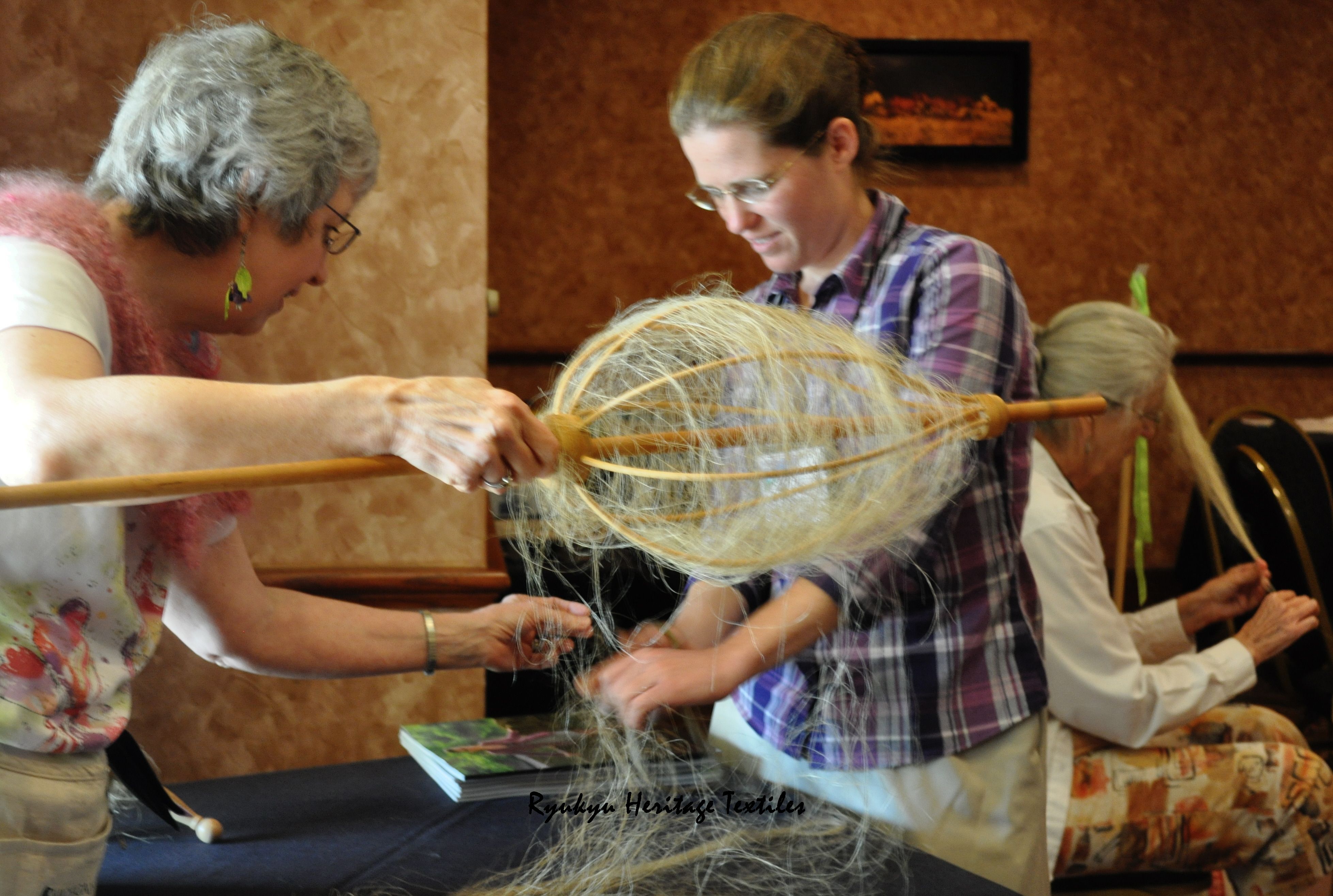 I am a 4th generation Ryukyu handspinner and weaver, and i am working to carry-on my family handspinning and weaving heritage. The native fibers of the Ryukyu Islands include Ito Basho, Hemp, Ramie, Bamboo and Silk. Therefore, the offering of Patsy’s class was serendipitous, indeed.