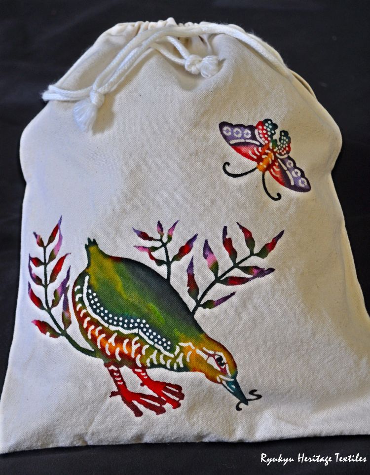 Since the Yanbaru Kuina is an endangered species, i have worked to incorporate it into my bingata artwork as a reminder for us to cherish our natural environment…
