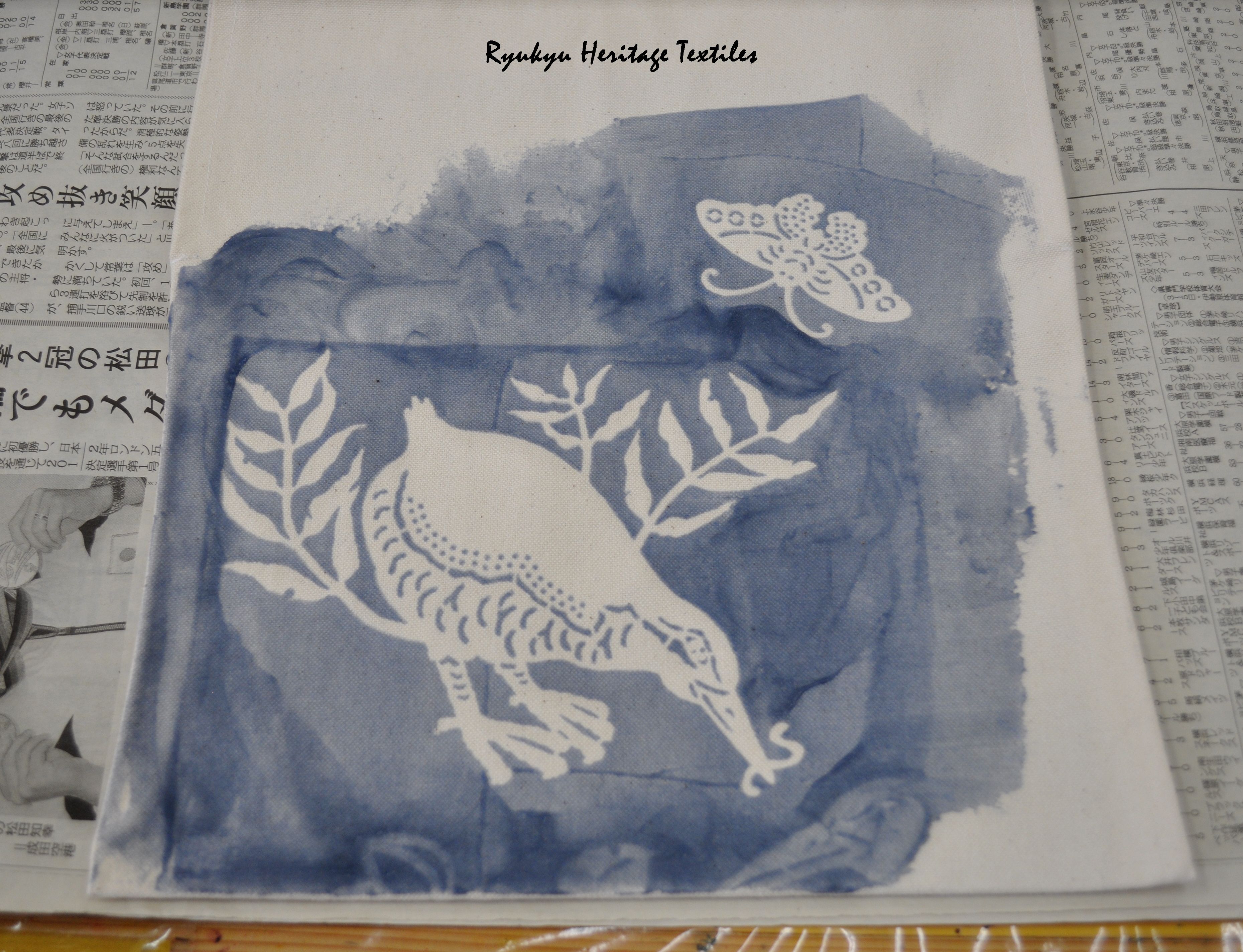 I recently incorporated my own interpretation of Yanbaru Kuina in a Bingata style textile. How about if i provide a brief introduction to my Bingata dye work process with you?
