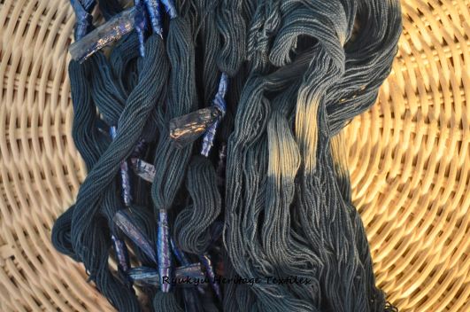 then let’s dip our threads, yes dip our threads into the blue dye…