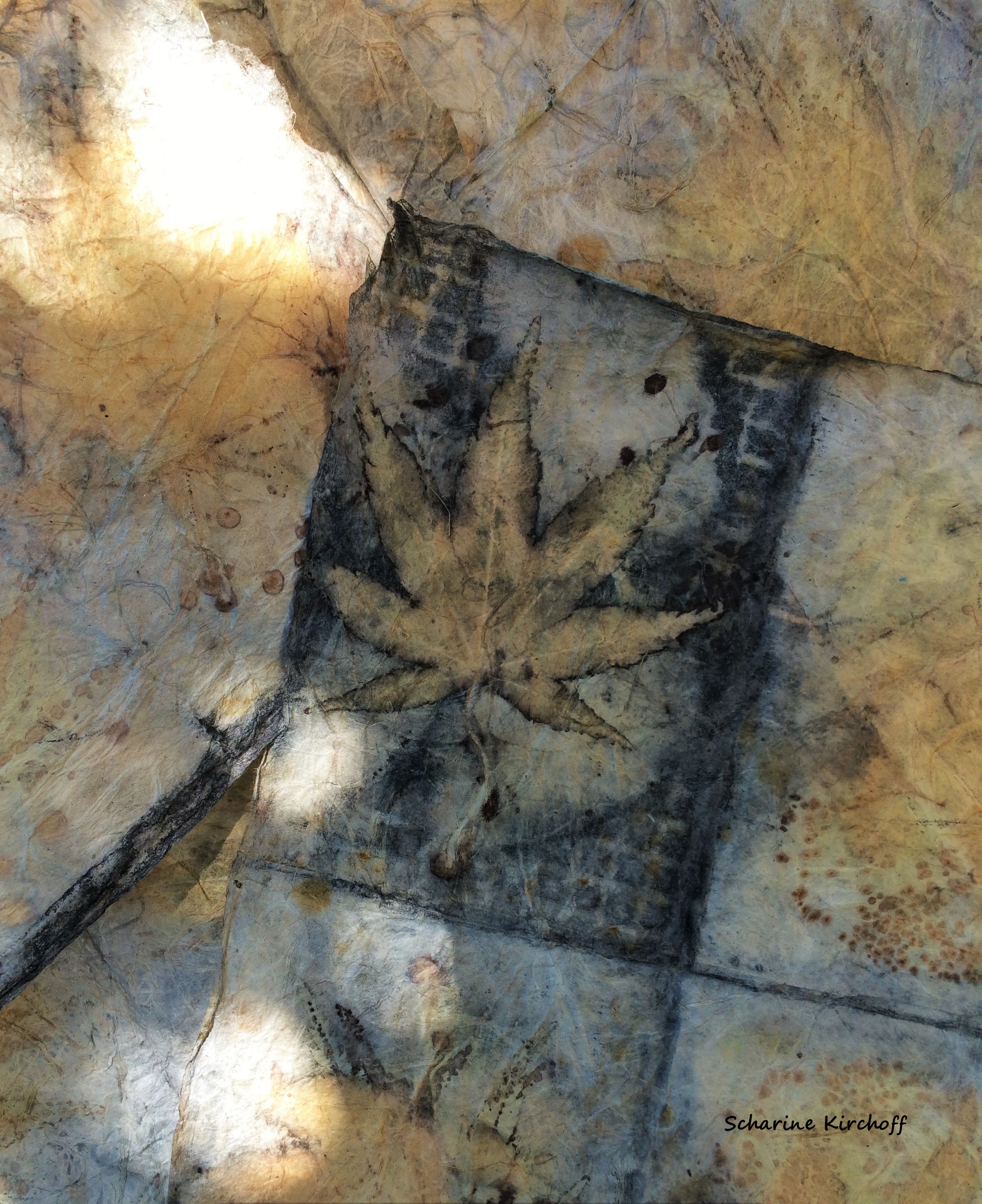 Eco-printing is a magical process in which pigment (colour) is extracted from botanicals using a variety of natural dye extraction and processing methods. The result is an assortment of botanical shapes and their associated colours “printed” onto fibers. My favorite eco-prints on paper are sourced from leaves. The shapes and forms of leaves fascinate me…