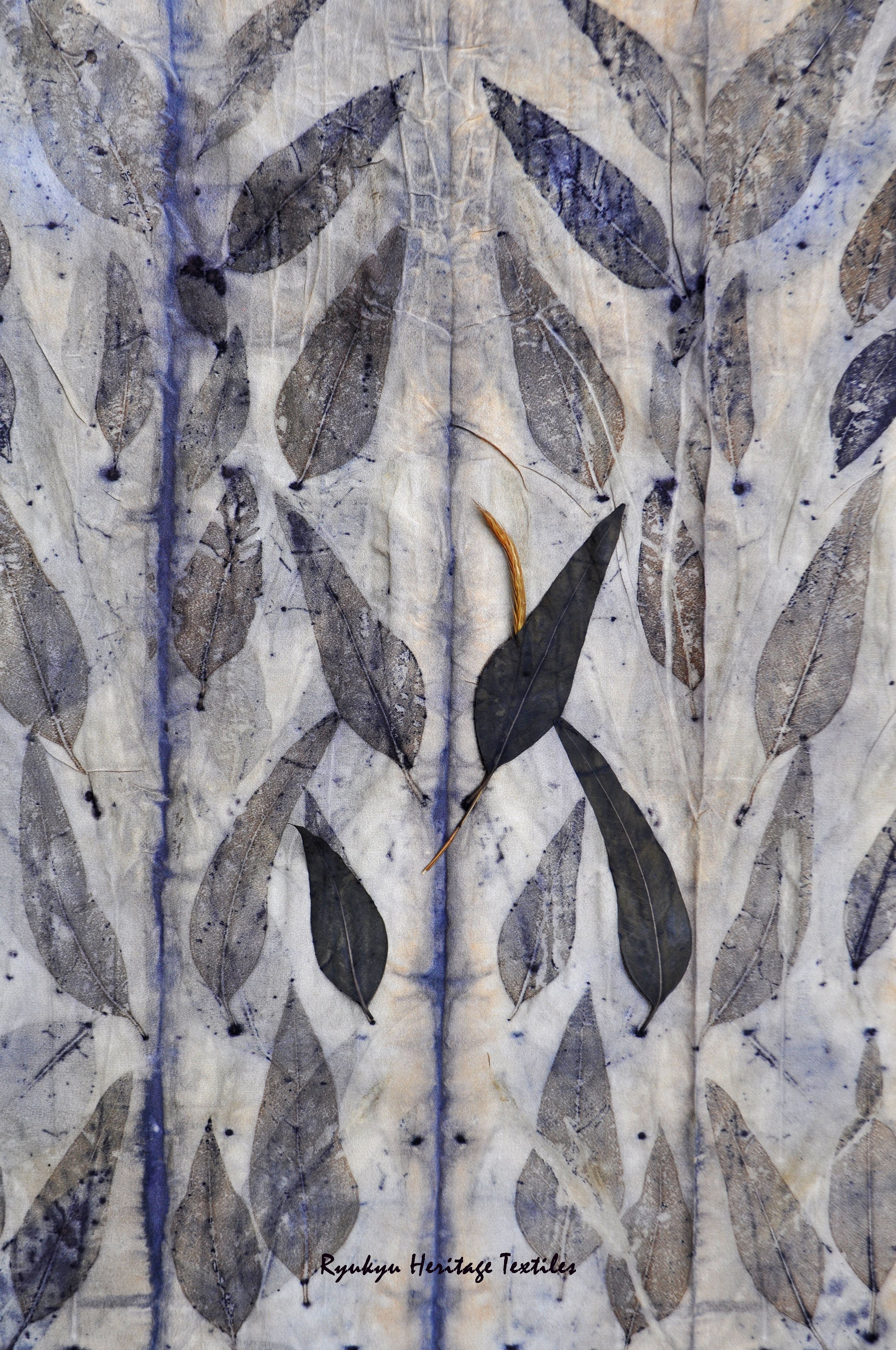 The use of natural dyes, including indigo, has been practiced in the tropical islands of Okinawa since the 14th century. Unlike in mainland Japan to the north, the native indigo in Okinawa is extracted and processed via fermentation. The heat extraction process is used to extract the green and blue pigment from the plant leaves.  When similar extraction processes are applied using a variety of botanicals, the surface design results on fabrics are beautiful. We get botanical imagery and color blending designed by both the fiber artist and mother nature hand-in-hand. This is the magic of organic dyeing!